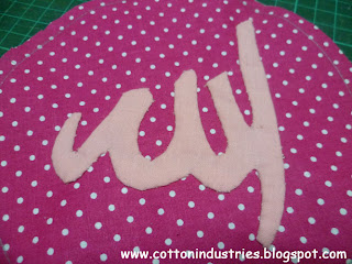 Butuh waktu 3-4 jam untuk menjahit tulisan tersebut, dan saya sudah menyelesaikan 2 buah, pada saat saya baru terpikir untuk menggunakan metoda lain menjahit aplikasi, biar hasilnya nggak lama bangeeeuuuuttt... heu heu heu... Oh well,better late than never.... :)